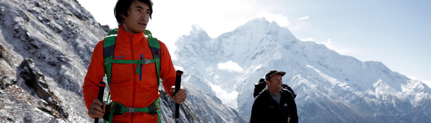 When he closes his eyes and thinks of Nepal, snow-capped mountains aren’t what first comes to David Lamas’ mind. Instead he sees green valleys – and the little village where his father grew up. The Austrian alpinist visited Nepal earlier than most western mountaineers. When he was a toddler his parents used to carry him around on their backs, right now they are following their son with David setting the pace.